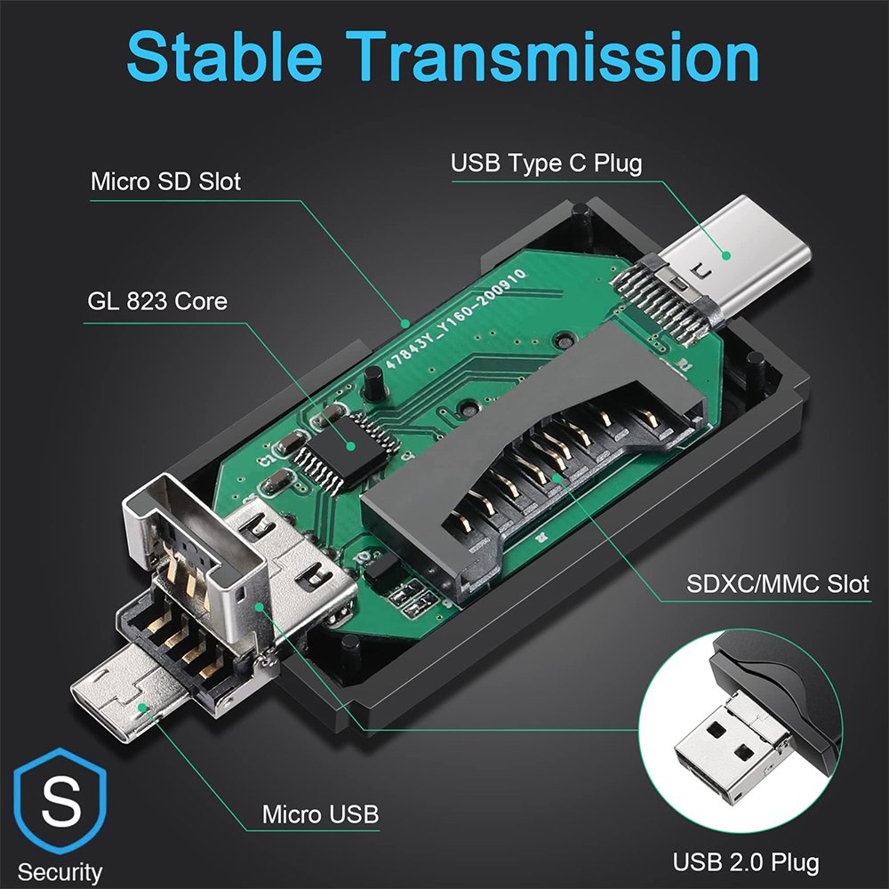 3 in 1 USB2.0 Card ReaderUSBMicro USBType C
