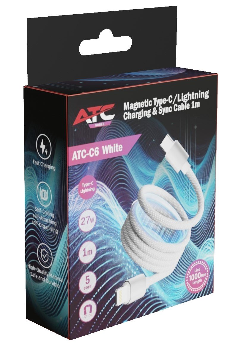 ATC-C6 Μαγνητικό Καλώδιο Φόρτισης & Μεταφοράς Δεδομένων Type-C σε Lightning 27W 1m Λευκό (20.003.0010)