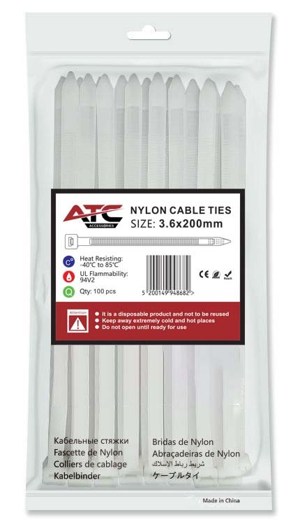 Ανθεκτικά δεματικά από νάιλον, 3.6x200mm, ιδανικά για στερέωση καλωδίων και οργάνωση καλωδίωσης. Διατίθενται σε πρακτική συσκευασία 100 τεμαχίων για εύκολη χρήση και αποθήκευση.