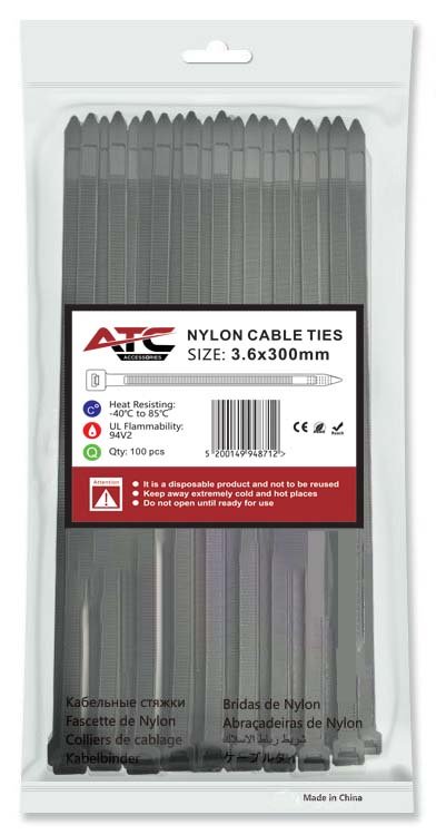 Ανθεκτικά δεματικά από νάιλον, 3.6x300mm, ιδανικά για στερέωση καλωδίων και οργάνωση καλωδίωσης. Διατίθενται σε πρακτική συσκευασία 100 τεμαχίων για εύκολη χρήση και αποθήκευση.
