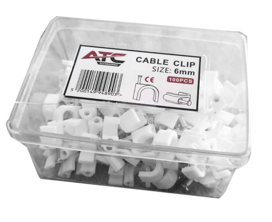 Ανθεκτικές λευκές ρόκες 6mm για ασφαλή οργάνωση καλωδίων. Κάθε κουτί περιέχει 100 τεμάχια, ιδανικά για οικιακή, επαγγελματική ή βιομηχανική χρήση.