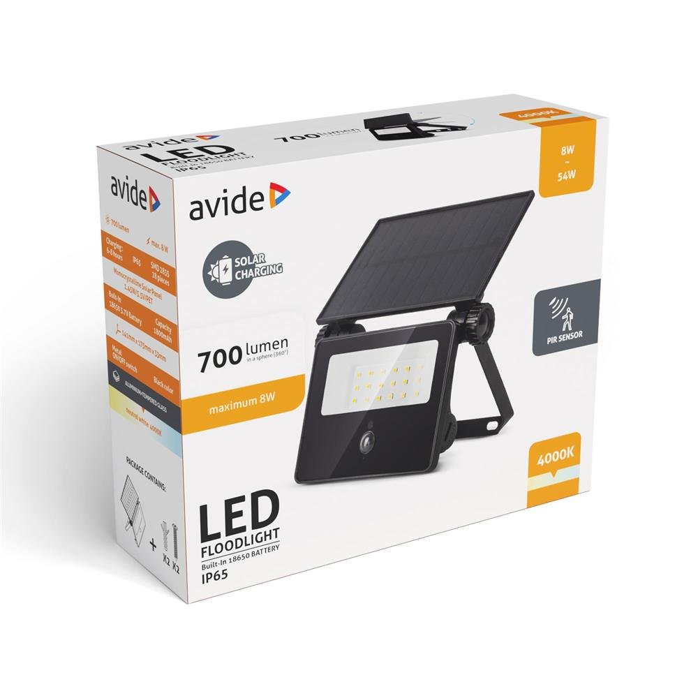 Avide 4000K Ηλιακός Προβολέας 700lm με Αισθητήρα PIR (15.001.2101)