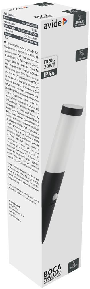 Avide Φωτιστικό τοίχου εξωτερικού χώρου Boca 1xE27 PIR IP44 Antracit