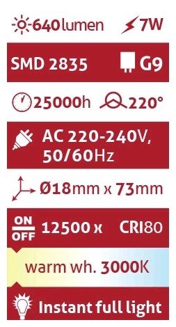 - Θερμοκρασία Φωτισμού : 3 000 K