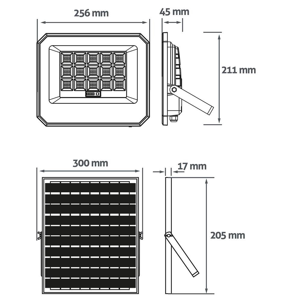 Διαστάσεις προϊόντος: Μέγεθος λάμπας: 256x45x211mm / Μέγεθος ηλιακού πάνελ: 300x17x205mm