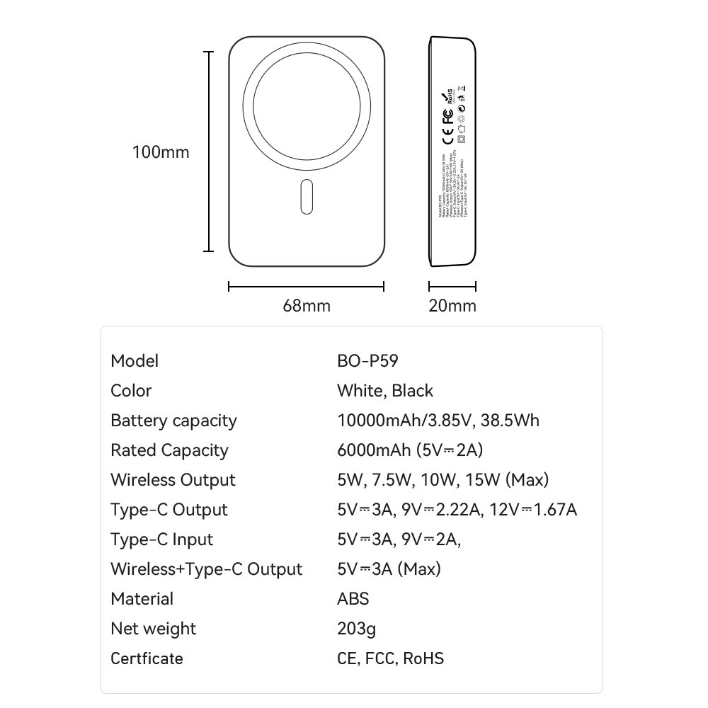 This magnetic wireless power bank with a 10000 mAh capacity provides enough energy to keep your devices charged all day. Its compact design makes it easy to carry in a pocket or bag, making it ideal for travel. The MagSafe-compatible power bank with a built-in stand features a foldable holder that allows you to freely position the device vertically or horizontally.