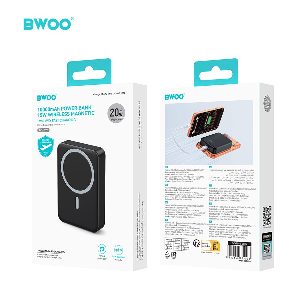 BWOO 20W 10000 mAh power bank, black (GSM188867)