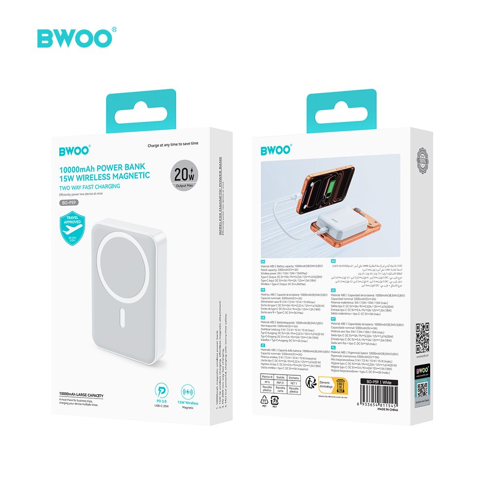 BWOO 20W 10000 mAh power bank, white (GSM188866)