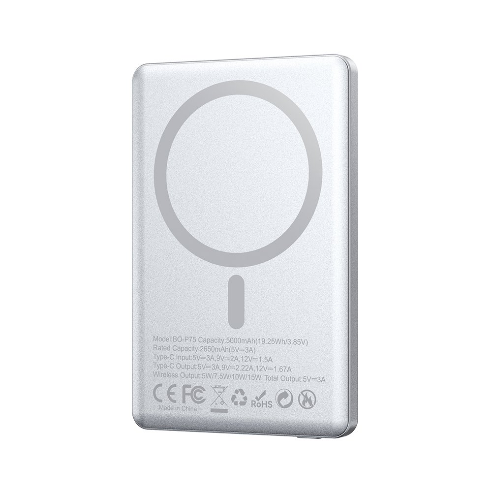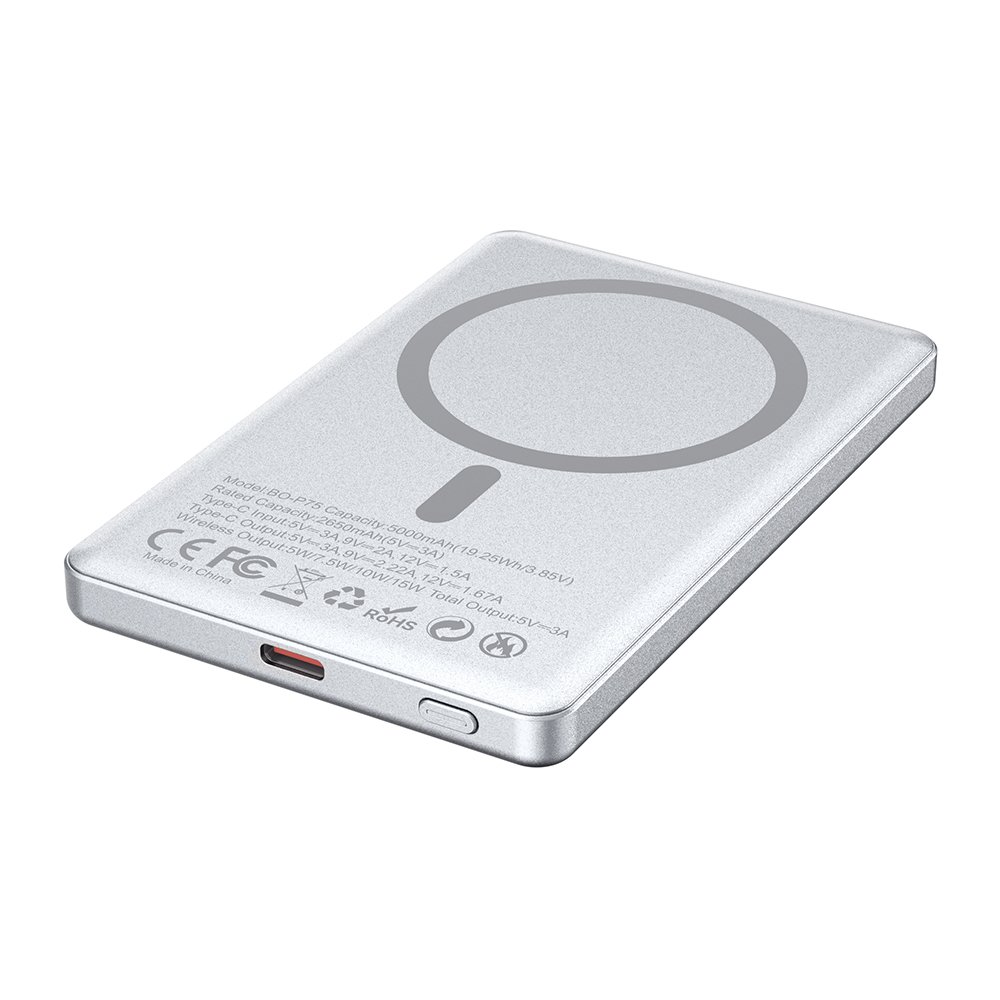 BWOO aluminium magnetic power bank P75 PD 20W 5000 mAh with digital display and USB-C port silver (GSM193926)