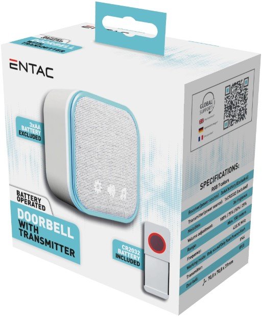 Entac Doorbell Λειτουργεί με μπαταρία 3xAA (δεν περιλαμβάνεται), με πομπό IP44 που λειτουργεί με μπαταρία 1xCR2032 (περιλαμβάνεται)Συσκευασία κουτί : 20 τμχ