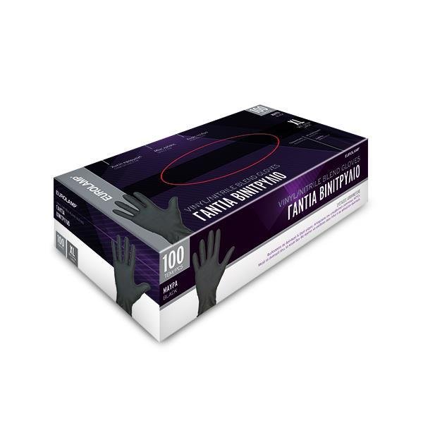 ΓΑΝΤΙΑ ΒΙΝΥΛΙΟΥ-ΝΙΤΡΙΛΙΟΥ ΣΥΝΘΕΤΙΚΑ ΜΙΑΣ ΧΡΗΣΗΣ ΧΩΡΙΣ ΠΟΥΔΡΑ ΜΑΥΡΑ ΜΕΓΕΘΟΣ XLARGE 100ΤΕΜ