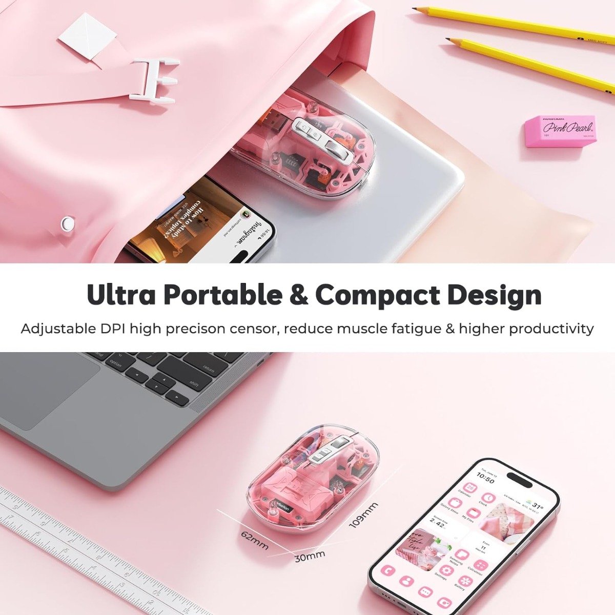 【Κομψή και άνετη αίσθηση στο χέρι】 Η εξαιρετικά λεπτή διαφανής μαγνητική σχεδίαση του κελύφους του ποντικιού εξασφαλίζει ασφαλή προσάρτηση. Επίσης, η μοναδική σχεδίαση κυκλικού τροχού και η μεγαλύτερη επιφάνεια επαφής παρέχουν πρόσθετη άνεση κατά τη χρήση. Η αθόρυβη σχεδίαση για τα αριστερά και τα δεξιά κουμπιά δημιουργεί ένα ήσυχο περιβάλλον στο σπίτι ή στο γραφείο. Αυτό το αμφιδέξιο ποντίκι Bluetooth έχει σχεδιαστεί για άνεση και εκτεταμένη χρήση. Ταιριάζει τέλεια στην παλάμη του χεριού σας, εφαρμόζοντας τέλεια και στα δύο χέρια.【Ασύρματο ποντίκι διπλής λειτουργίας】Το ποντίκι υπολογιστή διαθέτει απρόσκοπτη εναλλαγή μεταξύ ασύρματων συνδέσεων Bluetooth 5.1 και 2.4G για σταθερή και αξιόπιστη απόδοση. Συνδέστε έως και 3 συσκευές και ελέγξτε τις αβίαστα με ένα ποντίκι. Ενώ το 2.4G παρέχει ευκολία plug & play, δεν χρειάζεται πρόγραμμα οδήγησης. (Ο δέκτης USB είναι αποθηκευμένος κάτω από το μαγνητικό επάνω κάλυμμα).【Ασύρματο επαναφορτιζόμενο ποντίκι】Αυτό το ποντίκι έχει ενσωματωμένη χωρητικότητα μπαταρίας 400 mAh με καλώδιο γρήγορης φόρτισης Type-C (συμπεριλαμβάνεται), πείτε αντίο στην αντικατάσταση μπαταριών. Χρειάζονται μόνο 2 ώρες για φόρτιση για 15-30 ημέρες. Το ποντίκι έχει χαμηλή κατανάλωση ενέργειας και μεταβαίνει αυτόματα σε κατάσταση αναστολής λειτουργίας μετά από 15 λεπτά χωρίς λειτουργία για εξοικονόμηση ενέργειας, μπορείτε να το ξυπνήσετε κάνοντας κλικ σε οποιοδήποτε κουμπί.