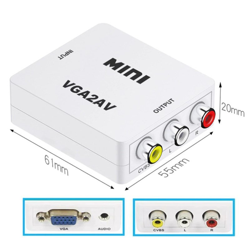Μετατροπέας VGA σε AVMετατροπέας που μας δίνει την δυνατότητα απο σήμα αναλογικό βίντεο VGA να το μετατρέψουμε σε αναλογικό σήμα βίντεο RCA.Δεν λειτουργεί αμφίδρομα.
