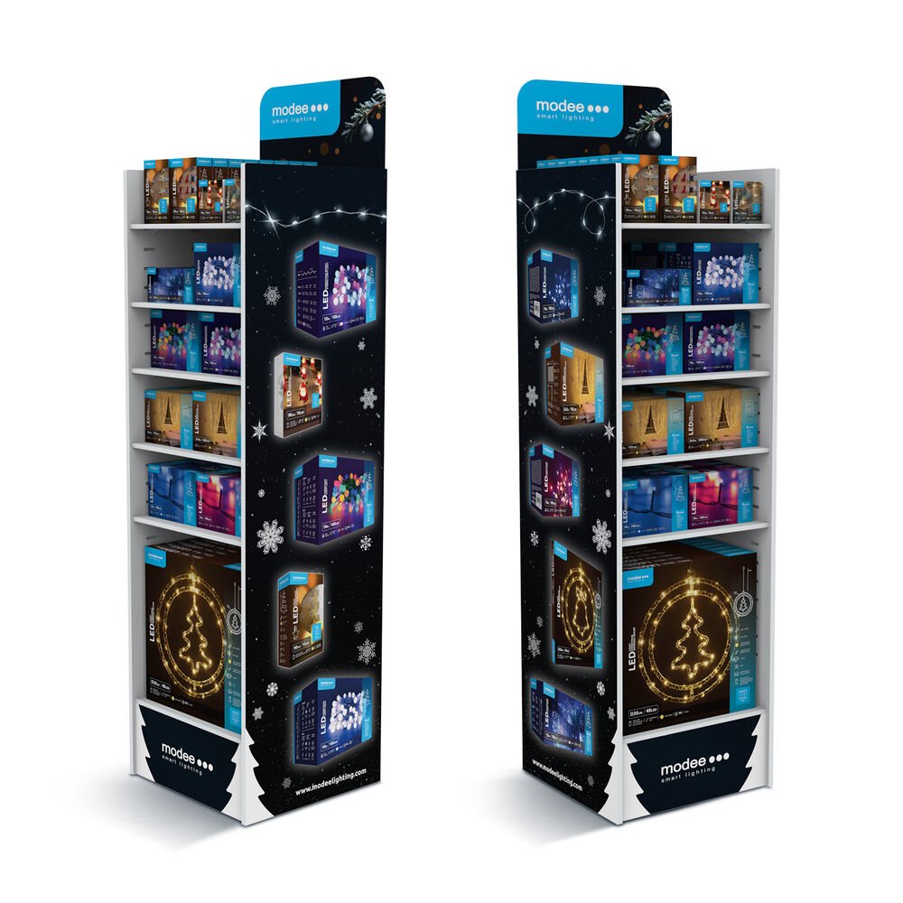 Ο κομψός και ψηλός σχεδιασμός της επιτρέπει την εντυπωσιακή προβολή των φωτιστικών σε επαγγελματικούς χώρους. Το χάρτινο υλικό είναι σταθερό αλλά ελαφρύ, καθιστώντας τη βάση ιδανική για χρήση σε καταστήματα ή εκθέσεις. Είναι κατάλληλη για την παρουσίαση κάθε είδους διακοσμητικού φωτισμού — ιδιαίτερα χριστουγεννιάτικων LED αλυσίδων — με οργανωμένο και ελκυστικό τρόπο.