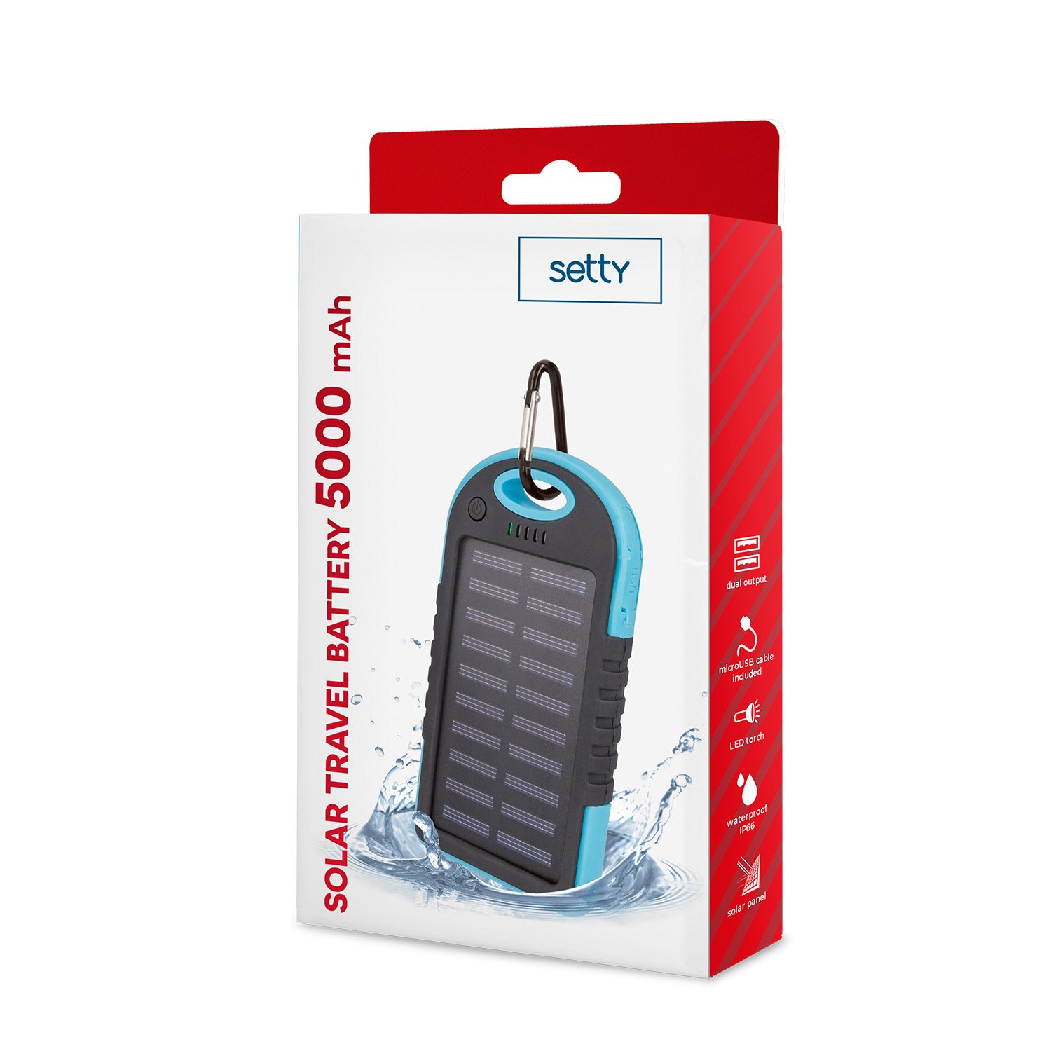 Ο φορητός ηλιακός φορτιστής Setty με χωρητικότητα 5000mAh είναι η τέλεια λύση για ενεργούς ανθρώπους που χρειάζονται μια επιπλέον πηγή ενέργειας εκτός σπιτιού, κατά τη διάρκεια ταξιδιών ή κατασκήνωσης. Εξοπλισμένος με ηλιακό πάνελ, σας επιτρέπει να επαναφορτίζετε τη μπαταρία χρησιμοποιώντας ηλιακή ενέργεια, καθιστώντας τον απαραίτητο εκεί που η πρόσβαση σε πρίζα είναι περιορισμένη. Η συμπαγής θήκη σε ζωηρό μπλε χρώμα συνδυάζει μοντέρνα εμφάνιση με πρακτική λειτουργικότητα, ενώ οι ενσωματωμένες προστασίες διασφαλίζουν τις συσκευές σας από υπερτάσεις και υπερθέρμανση. Είναι ένας αξιόπιστος σύντροφος για κάθε ταξίδι, έτοιμος να παρέχει ενέργεια όταν την χρειάζεστε περισσότερο.