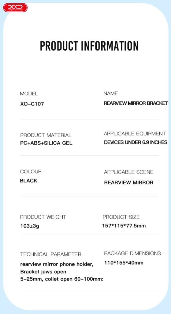 XO C107 Βάση Αυτοκινήτου Καθρέφτη (16.006.0184)
