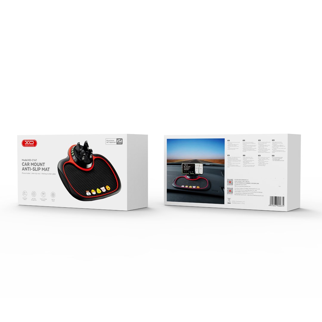 Το XO-C167 είναι ένα πολυλειτουργικό αξεσουάρ αυτοκινήτου συνδυάζει ένα αντιολισθητικό χαλάκι τηλεφώνου και μια βάση τηλεφώνου —όλα σε έναν κομψό μαύρο σχεδιασμό. Κατασκευασμένο από ανθεκτικό PVC, παρέχει μια σταθερή επιφάνεια για να κρατάτε το τηλέφωνό σας με ασφάλεια κατά την οδήγηση. Τα συμπεριλαμβανόμενα αυτοκόλλητα αριθμού (6 ομάδες των 0–9) σάς επιτρέπουν να προσαρμόσετε την ενσωματωμένη πινακίδα στάθμευσης για εύκολη επαφή όταν χρειάζεται.