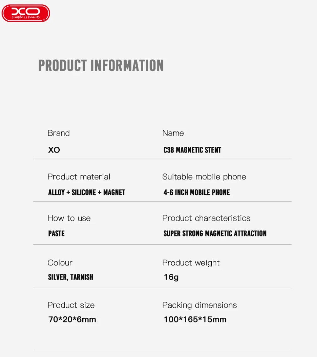 XO C38 Μαγνητική Βάση Αυτοκινήτου Μαύρο (16.006.0029)