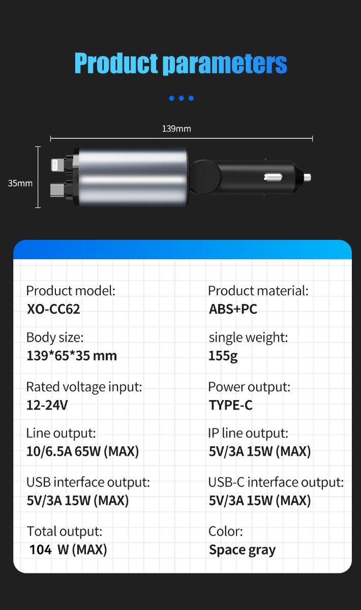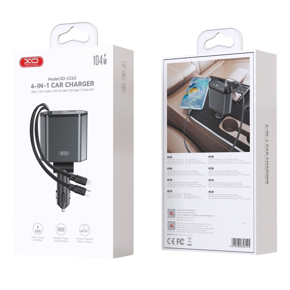 XO CC62 Smart Μεταλλικός 4 σε 1 Retractable Φορτιστής Αυτοκινήτου (16.006.0308)
