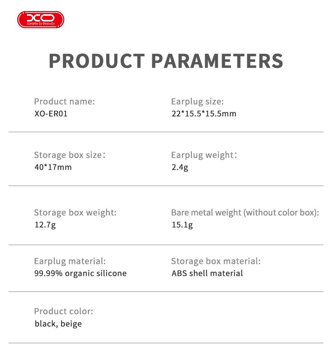 Οι ωτοασπίδες XO-ER01 έχουν σχεδιαστεί για ξεκούραστο ύπνο και αποτελεσματική απομόνωση θορύβου. Κατασκευασμένες από 99,99% οργανική σιλικόνη, είναι εξαιρετικά μαλακές, ελαφριές (2,4g ανά ακουστικό) και άνετες για χρήση όλη τη νύχτα.