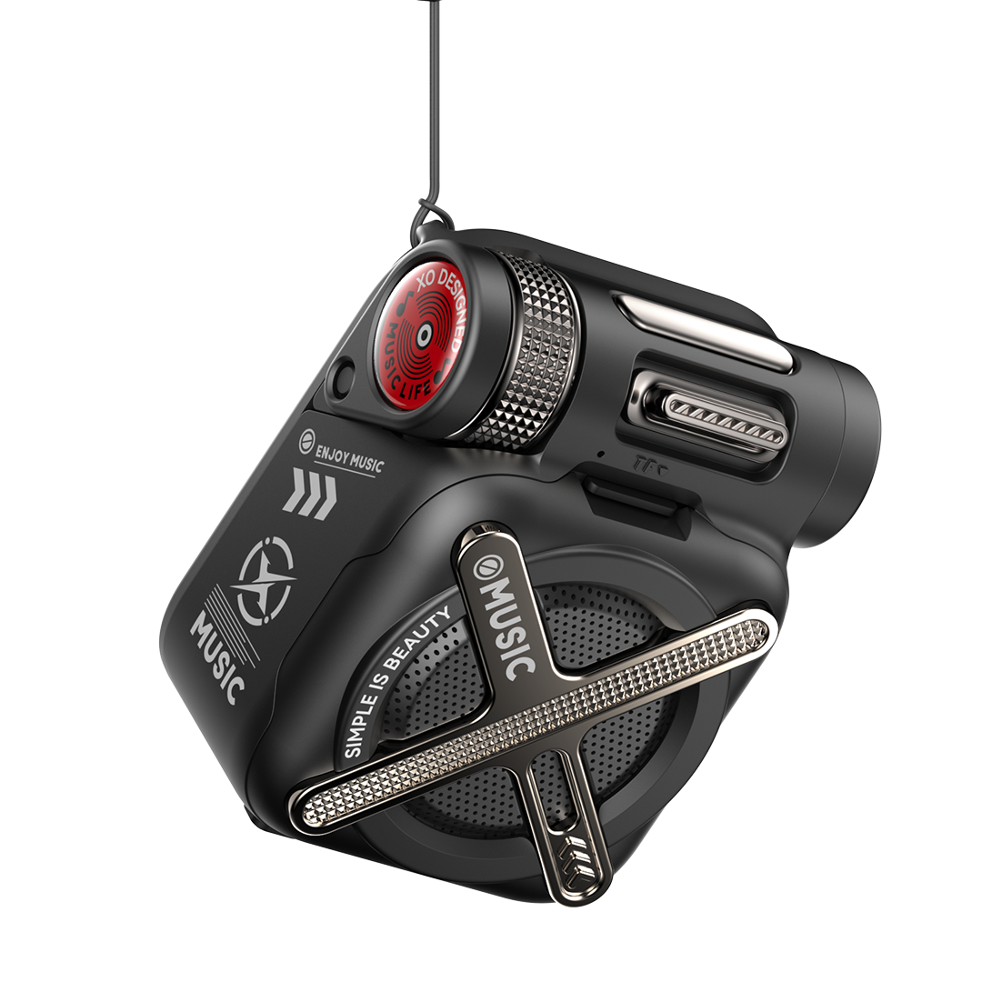 XO F72 Mecha φορητό ασύρματο ηχείο σε μαύρο χρώμα με υποστήριξη Bluetooth 5.4 και κάρτας TF. Προσφέρει ισχύ 5W, αυτονομία έως 12 ώρες, φόρτιση μέσω Type-C και μπαταρία 1000mAh για καθημερινή χρήση.