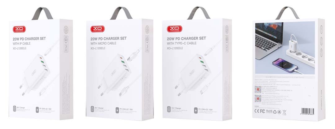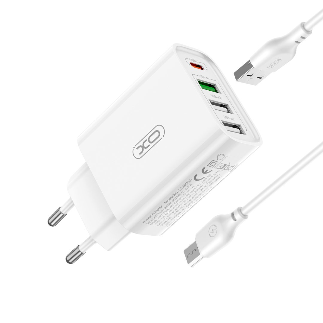 XO L120 (EU) Φορτιστής γρήγορης φόρτισης πολλαπλών θυρών με καλώδιο Micro (NB189A) (16.006.0270)