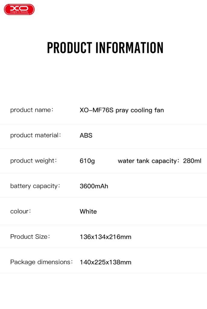XO MF76 Ανεμιστήρας με υγροποιητή (16.008.0024)