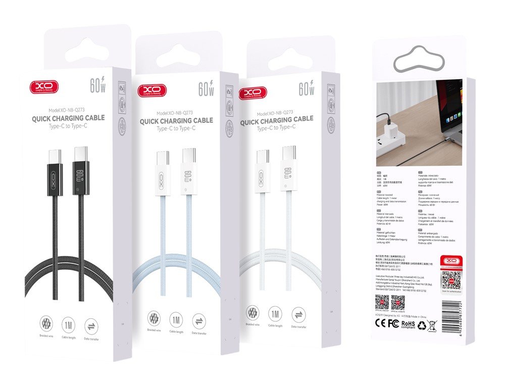XO NB-Q273 iP15 Καλώδιο φόρτισης Type-C σε Type-C 60W Λευκό (16.005.0356)