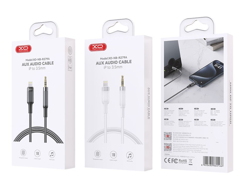 Το XO NB-R279A είναι ένα καλώδιο ήχου Lightning έως 3,5 mm AUX υψηλής ποιότητας, σχεδιασμένο για απρόσκοπτη σύνδεση ήχου με συσκευές Apple. Με ανθεκτικό μήκος 1 m, παρέχει σταθερή και καθαρή εμπειρία ήχου. Χτισμένο με ενισχυμένο πυρήνα σπειρώματος (16/0,08 εμαγιέ σύρμα + 250D) 3C, εξασφαλίζει βελτιωμένη αντοχή και μετάδοση σήματος.