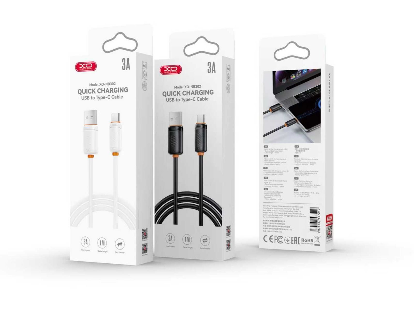 Το XO NB302 είναι καλώδιο USB-A σε Type-C μήκους 1 m, που υποστηρίζει γρήγορη φόρτιση 3A και μεταφορά δεδομένων, κατασκευασμένο από ανθεκτικό PVC για καθημερινή αξιοπιστία.
