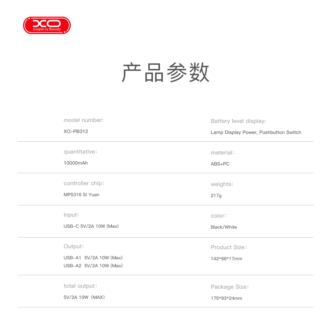 XO PB312 Powerbank 10.000mAh Λευκό (16.010.0099)