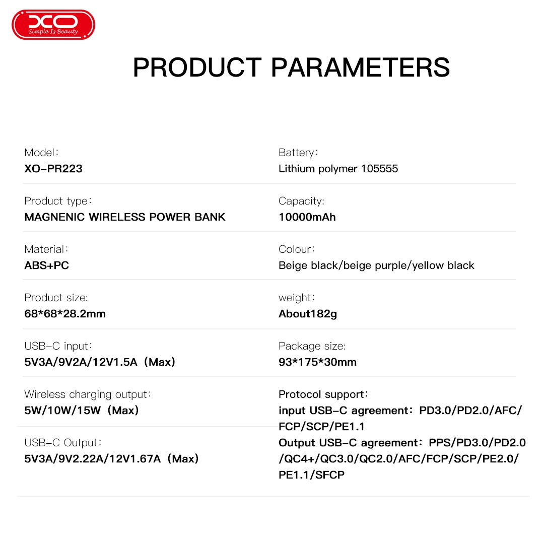 XO PR223 mini camera digital display fast charging power bank 10000mAh (Black & Yellow) (16.010.0064)