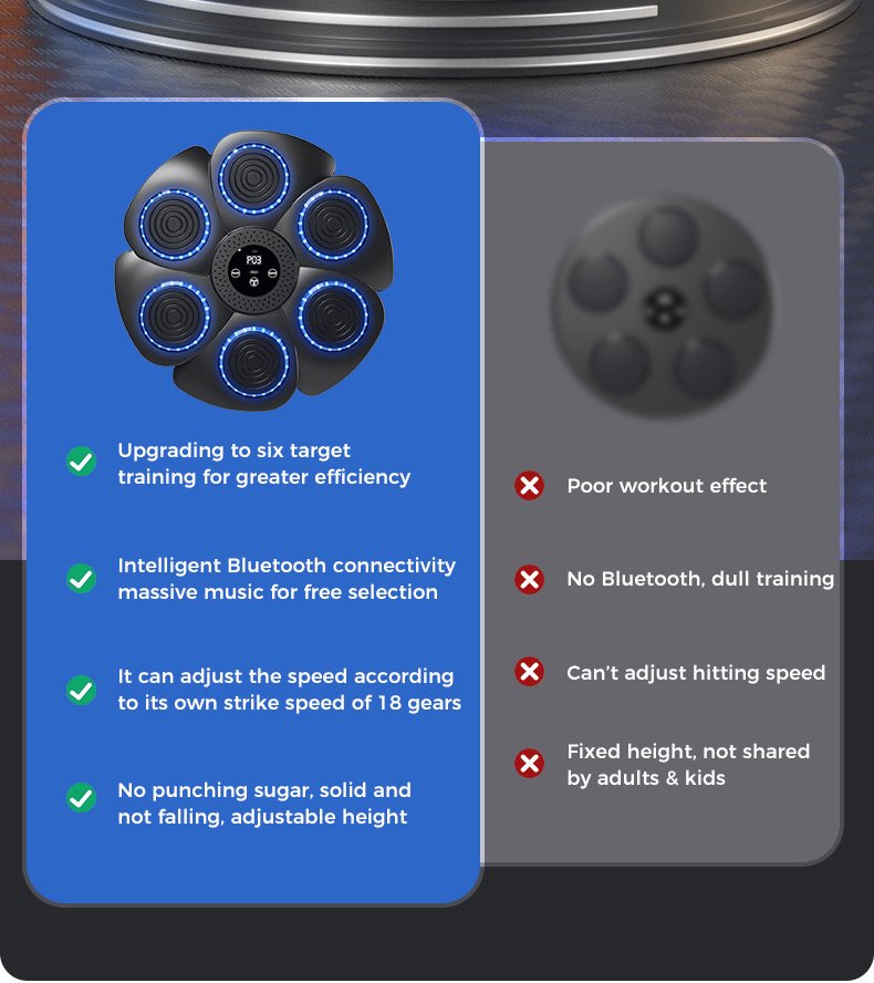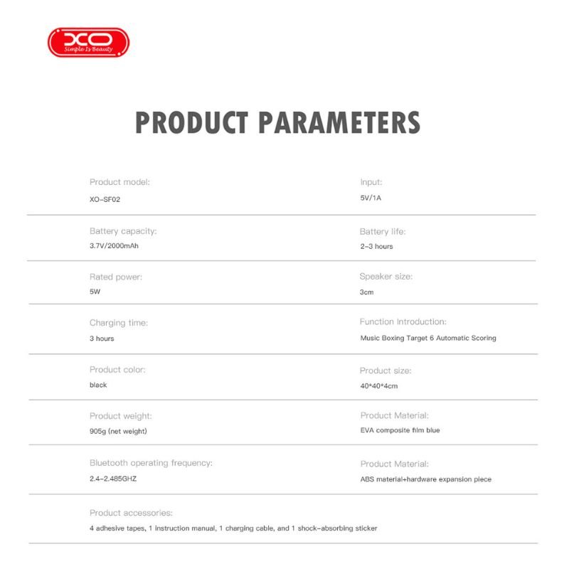 Προπονήσου πιο έξυπνα και χτύπα πιο δυνατά με το XO SF-02 Musical Boxing Target, έναν διασκεδαστικό και διαδραστικό προπονητή πυγμαχίας σχεδιασμένο για ενήλικες. Με στόχους που ανταποκρίνονται στη μουσική, ανθεκτική κατασκευή PP+EVA και γάντια πυγμαχίας στη συσκευασία, προσφέρει μια ολοκληρωμένη προπόνηση σώματος στο σπίτι. Η επαναφορτιζόμενη μπαταρία 2000mAh παρέχει έως και 3 ώρες χρήσης σε έναν συμπαγή, εύκολο στην τοποθέτηση σχεδιασμό. Ιδανικό για βελτίωση αντανακλαστικών, ταχύτητας και συντονισμού, ενώ βοηθά στην καύση θερμίδων.