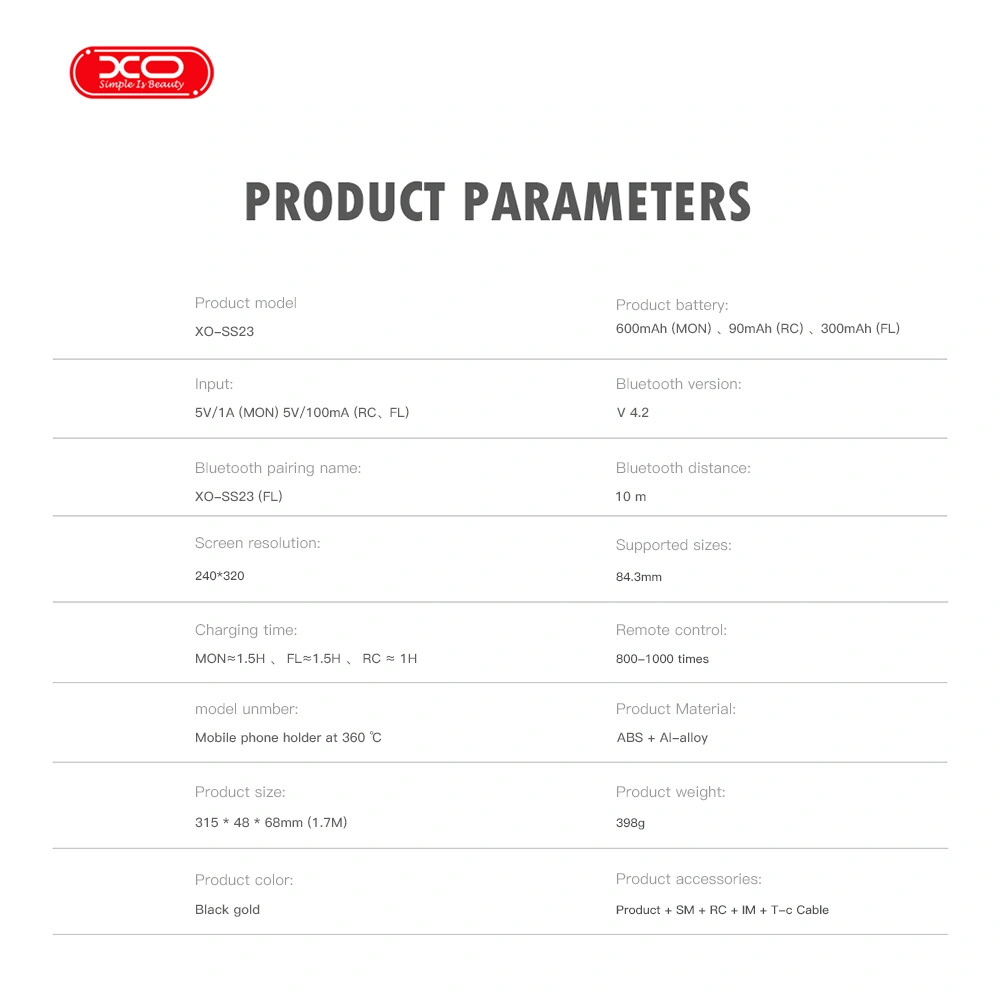 Υλικό προϊόντος: ABS + τηλεσκοπικός σωλήνας από κράμα αλουμινίου + LCD + σκληρυμένο γυαλί + πλακέτα FC
