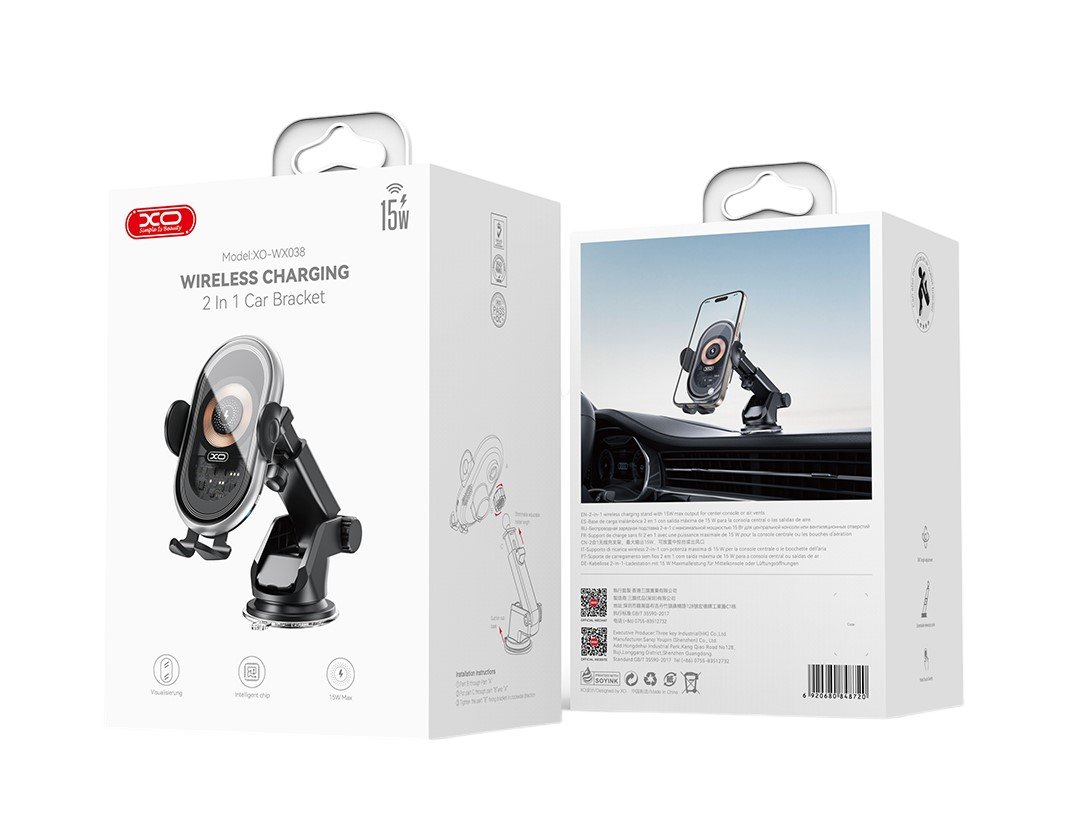 XO WX038 Διαφανής Βάση Ασύρματης Φόρτισης Αυτοκινήτου 2 σε 1 – Αεραγωγού & με Βεντούζα 15W (16.006.0295)
